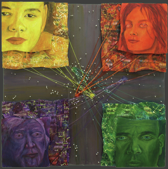 Acryl/Acrylgelstreifen auf 3-Ebenen-Relief Untere Ebene 182 Modellbaufiguren 100 x 100 cm Nov. 14