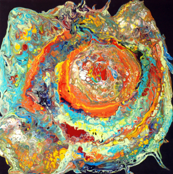 Serie FARB.guss Zellteilung III Acrygele (pouring) lauf MDF Platte