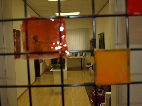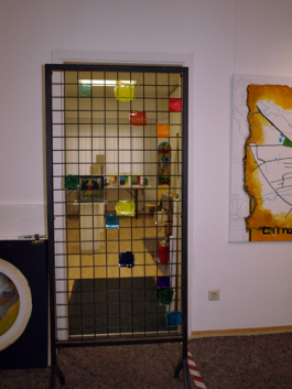 Ich möchte in der Arbeit Gelfarbenfelder nebeneinandersetzen. Ursprünglich wollte ich die Arbeit bewusst steuern, d.h. die Farben selber bestimmen und auch in einem Farbraum (blau/grün) belassen. Beim Planen der Ausstellung und bei der Suche nach Projekten, bei denen ich die Besucher miteibeziehen kann, kam mir dann die Idee die Felder und Farben einfach per Los ziehen zu lassen.