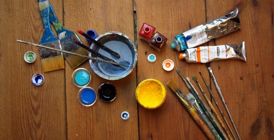 Außerdem muss heute noch die Einladungskarte zum Drucker. Das Foto für die Vorderseite habe ich gestern erstellt. Dazu habe ich mehrere Pinsel, Farben etc. auf einer Unterlage hin- und her arrangiert. Bis ich ein vernünftige Lösung hatte , die für das Format derKarte passt hat es einige Versuche gedauert. Fotos in den PC hochladen, in Fotoshop bearbeiten, einpassen und dann die Pinsel etc, wieder verrrücken und neue Fotos. Jetzt bin ich aber ganz zufrieden. Das Ergebnis lade ich als erstes Foto für den blog hoch.